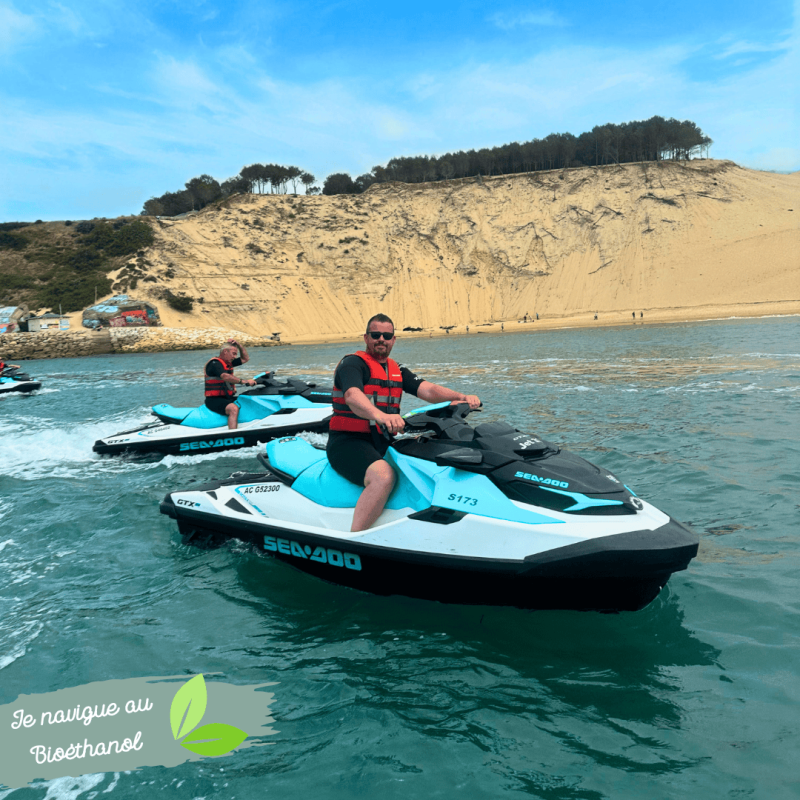 Randonnée en jet ski sans permis encadrée par des moniteurs diplômés.